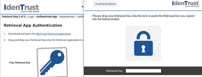 With the retrieval application open beside your web browser, drag the key onto the lock.